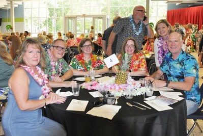 We made our way around the large room, capturing photos of smiling faces as the group enjoyed a Hawaiian-inspired lunch catered by "The Inn at Warm Springs," fruit-filled punches, a silent auction, and a raffle drawing with the grand prize being a luxurious overnight stay at the Omni Homestead Resort. Guests were also treated to photographs taken in front of a Hawaiian-themed backdrop.