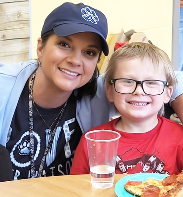 | Jeter-Watson Elementary School Assistant Principal Dee Ann Tickner joined kindergartener Nathaniel Forren for a pizza party on Friday, Sept. 26, to celebrate positive behavior. Nathaniel and other students enjoyed pizza with Tickner and Principal Cynthia Morgan after having no referrals to the principal’s office. Alleghany Highlands Public Schools champions students’ positive choices. (AHPS Photo)