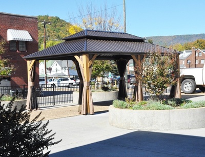 |  | Kristen McConnell shared that, soon, tables and chairs will be placed under this newly-installed gazebo so that customers may enjoy their food outdoors.