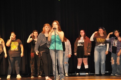 The Journal also paid a visit to tonight's dress rehearsal, held in Hodnett Hall, and were privy to several solos and group numbers. As one would expect from a "Party Like It's 1999" setlist, most of the songs are pulled straight from the 90's and Y2K eras. The numbers included "Livin' La Vida Loca" by Ricky Martin and performed by the concert choir, "...Baby One More Time" by Britney Spears and performed by the treble choir with featured soloists, "Bye, Bye, Bye" by N'SYNC and performed by the "Out-of-Sync" trio of Paisley Brooks, Megan Powell, and Corey Wiseman, "Since You've Been Gone" by Kelly Clarkson and performed by Esperanza Mireles, and many others.