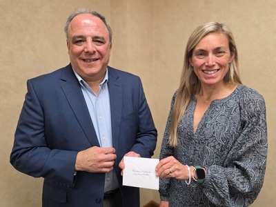 | Dr. John Rainone, Secretary & Treasurer of the Covington-Hot Springs Rotary, presents a donation to Rachael Thompson, 2025 Christmas Mother.