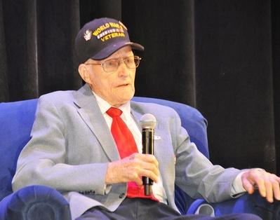 | Marion Noel, a 100-year-old Navy veteran, answered many questions from students today regarding his time in service.