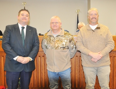 | Matt Garten, Falling Springs Representative, stands with Todd Tyler and Daniel Larnerd, each of whom retired from the Sheriff's Office this year.