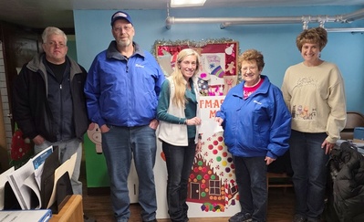 | The Alleghany Cruisers has made a donation to the Alleghany Highlands Christmas Mother. Pictured here (from left) are: John Sprouse, Robert Floyd (both of the Cruisers), Rachael Thompson (Christmas Mother), Mickey Floyd, and Heather Floyd (both of the Cruisers).