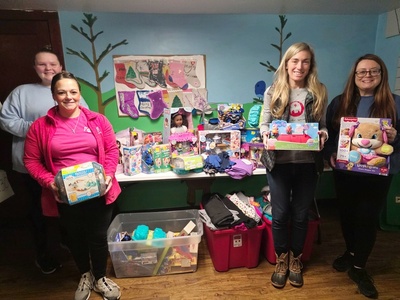 | Peachy Clean recently presented a generous donation of toys and children's clothing to the Alleghany Highlands Christmas Mother Program. Pictured here from left are Hannah Sheppard and Whitney Johnson (both of Peachy Clean), Rachael Thompson (Christmas Mother), and Ashley Seldomridge, Owner of Peachy Clean.