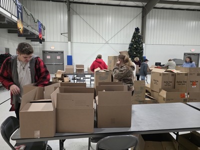 | Area teens came out on December 9 to help pack cleaning supply boxes for the Alleghany Highlands Christmas Mother Program. Together, they packed over 500 boxes.