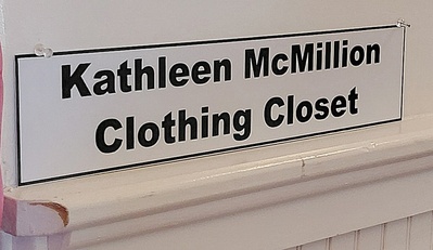 |  | The "Kathleen McMillion Clothing Closet" got its name in honor of the incredible woman who started it all in the 70's.