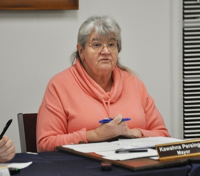 The entirety of the Iron Gate Town Council meeting was livestreamed by the Alleghany Journal and is currently available on our Facebook page. |  | (l to r) Councilwoman Jennifer Tyree, Vice Mayor Christopher Mayo, Mayor Kawahna Persinger, and Councilwoman Norvella Burrell.
