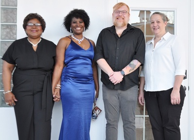 | (L to R) Ingrid Barber, CEO of Alleghany Highlands Community Services; Lamona West, Chair of Juneteenth Planning Commission; Tripp Curry, Director of Ceremonies at MenNefer; and Julie Carroll, caterer and owner of The Friendly Fork in Covington.