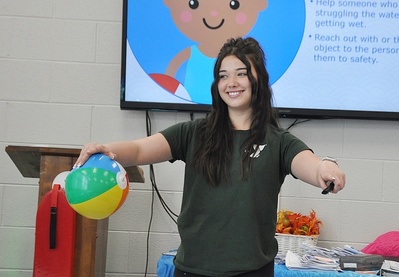 "They [second graders] come five different times," Wagner noted, "and each time that they come, they get about 45 minutes in the pool, which is happening behind us right now, and then they get about 45 minutes in the classroom, so we have a classroom component of this where we teach them about beach safety, how to properly put on a life jacket. We even talk about how to make a 9-1-1 call... not necessarily everybody knows what to do and what to say when you call 9-1-1."