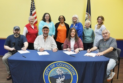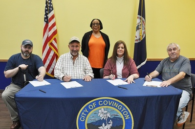 Present for the signings were Clifton Forge Mayor Jeff Irvine, Board Member for the Alleghany County Board of Supervisors, Shannon Cox, Covington City Manager Allen Dressler, and Iron Gate Councilman Christopher Mayo, and attested by Covington City Clerk Amber Berberette.