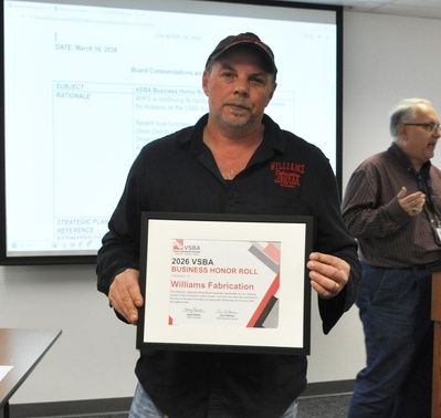 Low Moor, VA (Mar. 16, 2016)— Three local businesses were honored this evening for the Virginia School Boards Association's (VSBA) Business Honor Roll during the regular Alleghany Highlands School Board meeting held in Low Moor. Darrell Gleason, Communications Specialist for Alleghany Highlands Public Schools, gave a brief presentation recognizing Wiley's Garden Center, Maag Gala (Botetourt County), and Williams Fabrication.