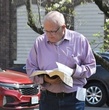 Afterwards, the group ventured inside for a sermon given by Pastor Teddy Bias of the First Assembly of God, located at 1610 Oak Hill Avenue in Clifton Forge. In following the annual traditions, the Celebration Choir, led by Choir Director Dale Muterspaugh, performed a few songs, concluding with their classic medley of "Sanctuary," "How Great is Our God," and "How Great Thou Art." |  | Pastor Grover Nicely shared a few words following the erection of the cross.
