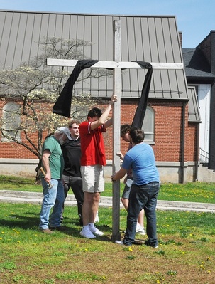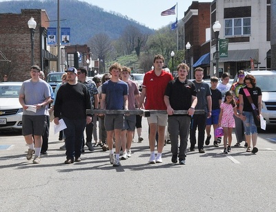 The participants then proceeded down Church Street before cutting over to Main for the remainder of the journey, singing familiar hymns such as "Because He Lives." Upon arrival at Central United Methodist, Pastor Grover Nicely said a few words after the cross was erected at the front of the church. His speech is currently available in its entirety on the Alleghany Journal website.