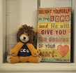 |  | Angela Howdershelt shared that her granddaughter was the mastermind in knitting together the school's mascot: the Covenant Christian Academy Lion, pictured here.