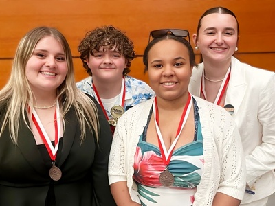 | Jackson River Technical Center Culinary Arts students earned top honors at the Virginia Family, Career and Community Leaders of America (FCCLA) competitions in Virginia Beach. From left, Abby Patterson, Cadence Bland, Ayonna Gibson, Marissa Nicely. Patterson and Gibson earned bronze ratings in the Baking and Pastry Competition Level 3. Bland placed first in Culinary Arts Exhibition Level 3, and Nicely placed second in Culinary Arts Competition Level 3 and qualified for the FCCLA National Leadership Conference in Washington, D.C., in July. Bland and Nicely also received more than $23,000 in combined scholarship offers. All competitors are juniors. Students participate in culinary fundraisers throughout the year to help cover travel and competition expenses. Chef Rob Fehle is the JRTC Culinary Arts instructor and FCCLA adviser. (JRTC Photo)