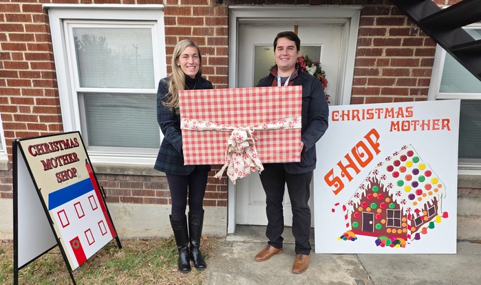 | Alleghany Health & Rehab recently conducted a toy & book drive to benefit the Alleghany Highlands Christmas Mother Program. Pictured here are Rachael Thompson, Christmas Mother, and Juan Lopez, Admissions & Marketing Director at Alleghaby Health & Rehab.