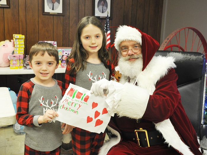 | Santa posed with many children this evening, including Daisy Bennett, who drew little Saint Nick a special picture.