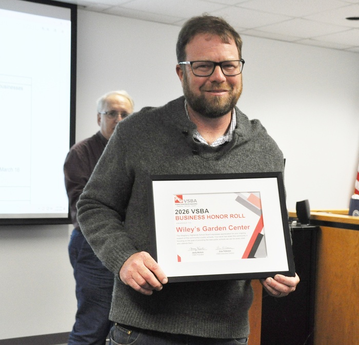| By Jennifer Bailey Staff Writer | Low Moor, VA (Mar. 16, 2016)— Three local businesses were honored this evening for the Virginia School Boards Association's (VSBA) Business Honor Roll during the regular Alleghany Highlands School Board meeting held in Low Moor. Darrell Gleason, Communications Specialist for Alleghany Highlands Public Schools, gave a brief presentation recognizing Wiley's Garden Center, Maag Gala (Botetourt County), and Williams Fabrication.