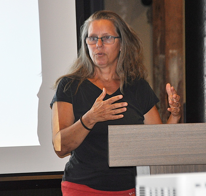 | Karen Weber, Brownfields Coordinator for the Virginia Department of Environmental Quality, gave an informative presentation this evening at the Clifton Forge Community Gathering meeting held at the Masonic Underground.