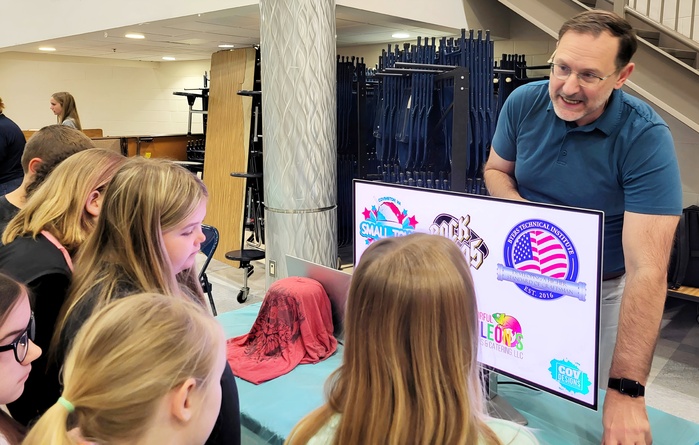 Graphic designer John Morris, owner of CovDesigns, shared how his childhood interest in drawing developed into a career creating imagery and branding for companies around the world. He encouraged students to pursue their interests.