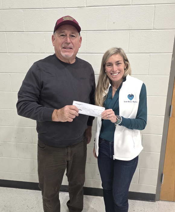 | Mike Henderson (left) of the Covington Masonic Lodge #171 AF & AM presented a donation to the Alleghany Highlands Christmas Mother, Rachael Thompson (right).