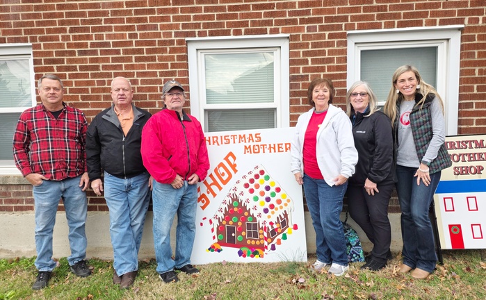 | Kars Unlimited recently presented a donation to the Alleghany Highlands Christmas Mother Program. Pictured (from right) Rachael Thompson, Christmas Mother, and Sally Kern, Lisa Trainer, Dennis Trainer, Mike Dabbs, and John Bush, all of Kars Unlimited.