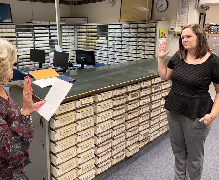 | Courtney Howard gets sworn as the new Clifton Forge West representative on the Alleghany County Board of Supervisors by Debra Byer, Clerk of Alleghany County Circuit Court.