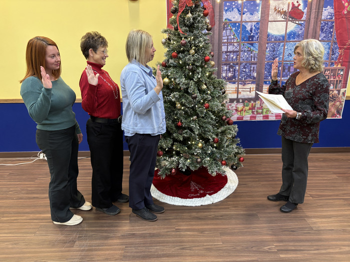 | Alleghany County Circuit Court clerk Debbie Byer, right, swears in Covington treasurer Gisela Roldan, along with Jennifer Parris, Deputy I, and Janie Fridley, Chief Deputy Treasurer, during a brief ceremony Tuesday, Dec. 16, in Covington City Hall Council Chambers. Pictured, from left, Parris, Fridley, and Roldan.
